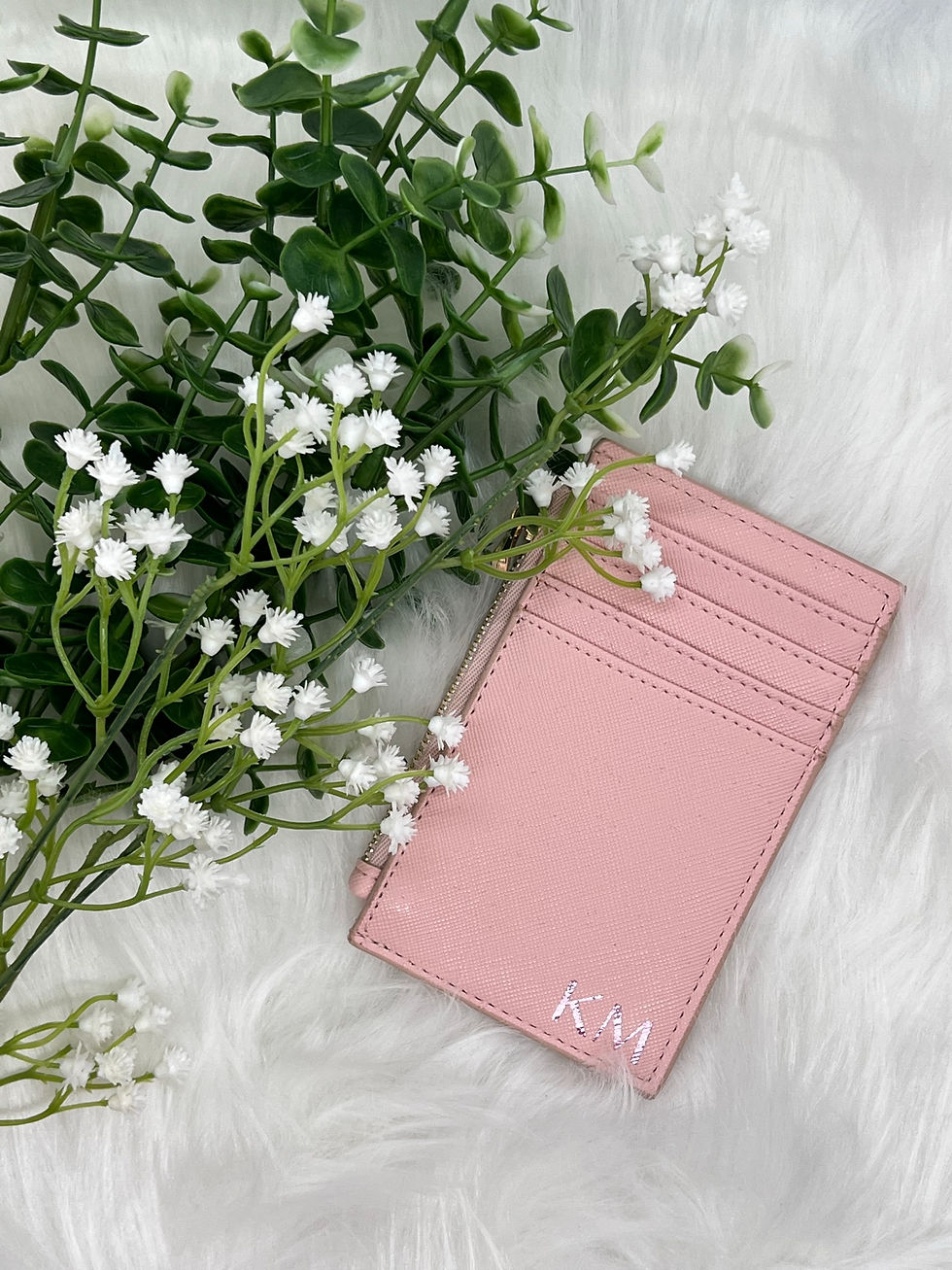 Faux leather pink credit card holder